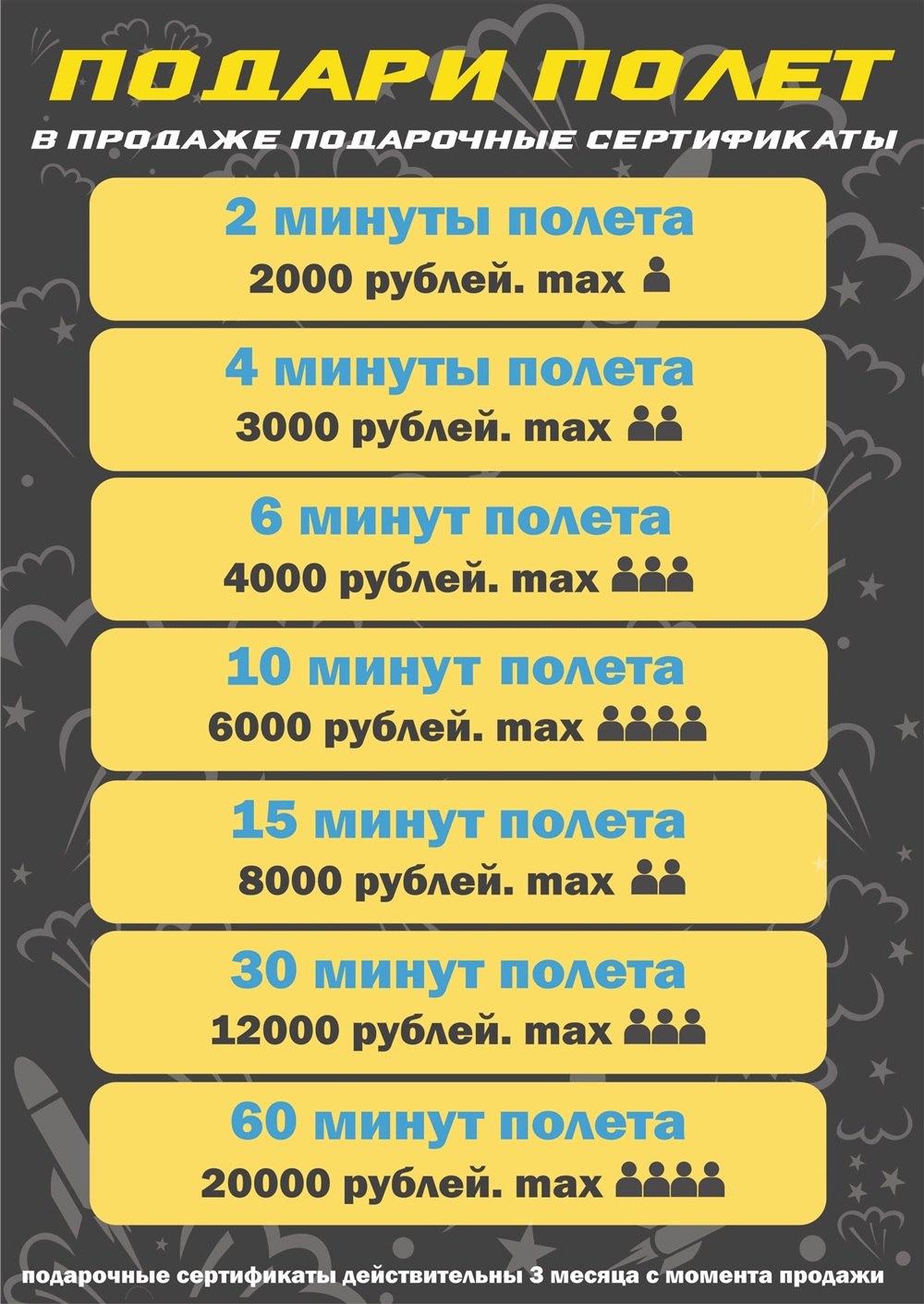 С 1 по 20 декабря 2016 года к каждому купленному сертификату мы добавляем подарок "+1 минута" сертификаты вы можете приобрести в центре Иркутска(Бульвар Гагарина 74, в рабочее время), а также заказать доставку в любой район города.