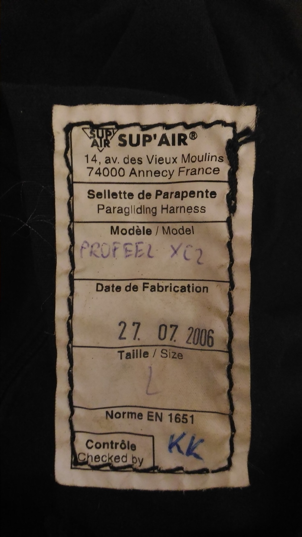 Подвесная система – SUPAIR PROFEEL XC2 L. Куплена и начала впервые использоваться в 2010