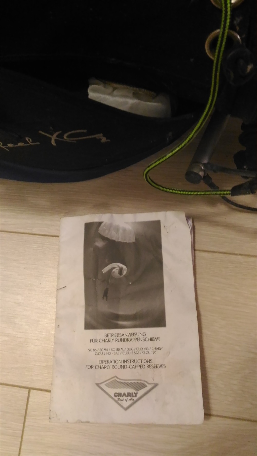 Запасной парашют – CHARLY SC94 (куплен всесте с подвеской). Требует переукладки.