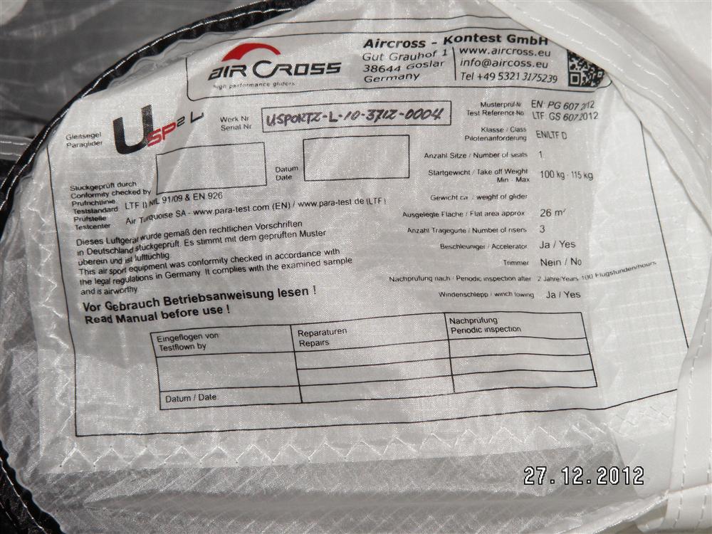 Ну раз пошла такая пьянка, то решил за одно и параплан поменять:-))) и заказал вот такой http://www.aircross.eu/web/?page_id=1625 у Мизурова Сергей, он официальный представитель AIRCROSS в Росси. Много в нём всяких усилений, теперь складывать прийдётся на много аккуратней :-(.