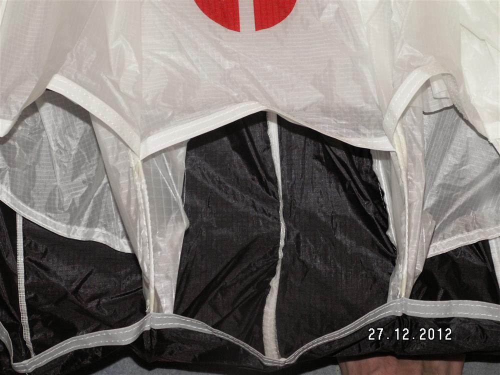 Да уж я представляю, как ты спишь в подвеске, под головой запаска а укрываешься парапланом. а какие сны снятся? Удлинение большое, зато воздухозаборники как у учебного ( судя по фото) да еще и реджфойлы удвоенные по периметру. Мне так каца что можно зашить выжатый аксель на концах сразу, ноги по турецки и вася кот.