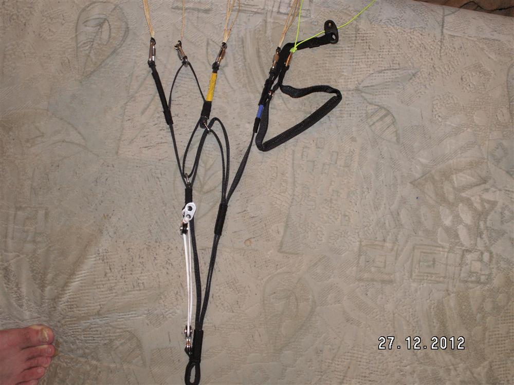 Параплан трёх рядный, свободные концы из узкой ленты, клеванты с вертлюгами.