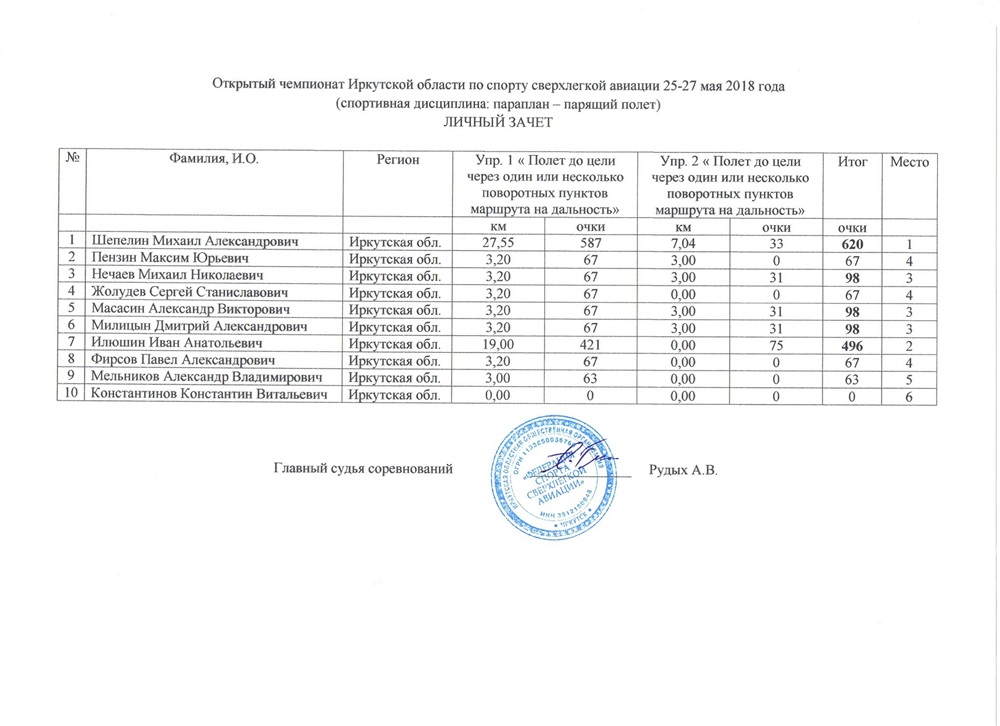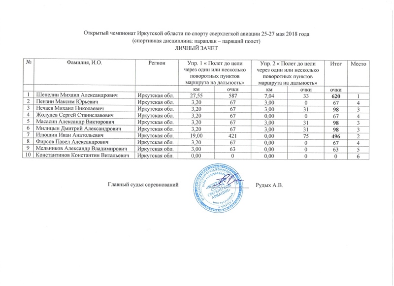 Результаты открытого Чемпионата Иркутской области по спорту сверхлегкой авиации