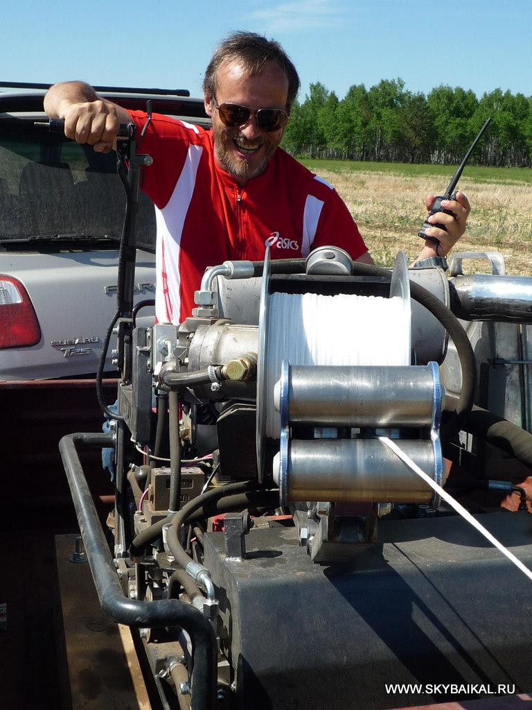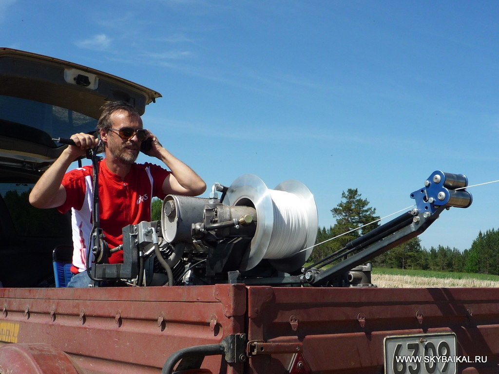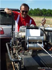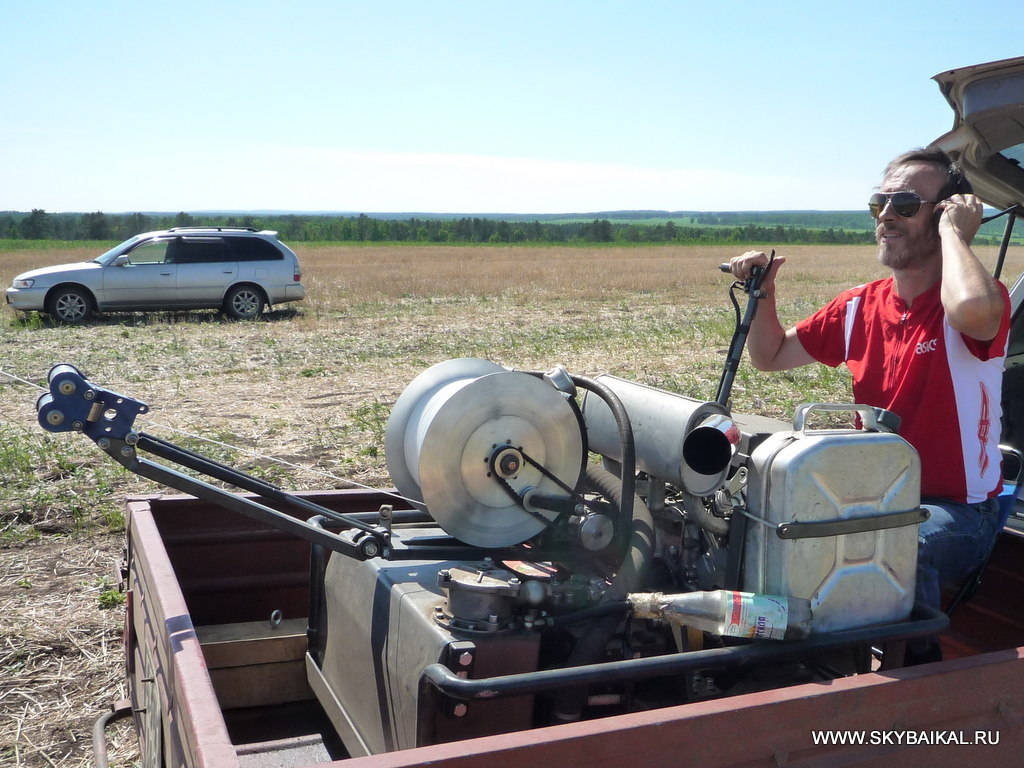 Отлично отстажировался на лебёдке Сергей Сизых. 16 безупречных затяжек, тестовым экзаменом которых стал наш "тяжёлый бомбардировщик" Степаныч. Как он только не упирался на старте, но 24 лошадинных силы нашего двигателя и 500 кг разрывной нагрузки троса ему не удалось остановить.