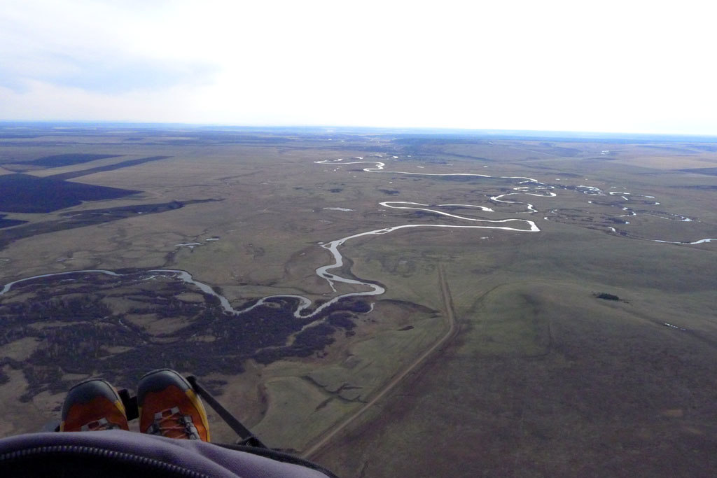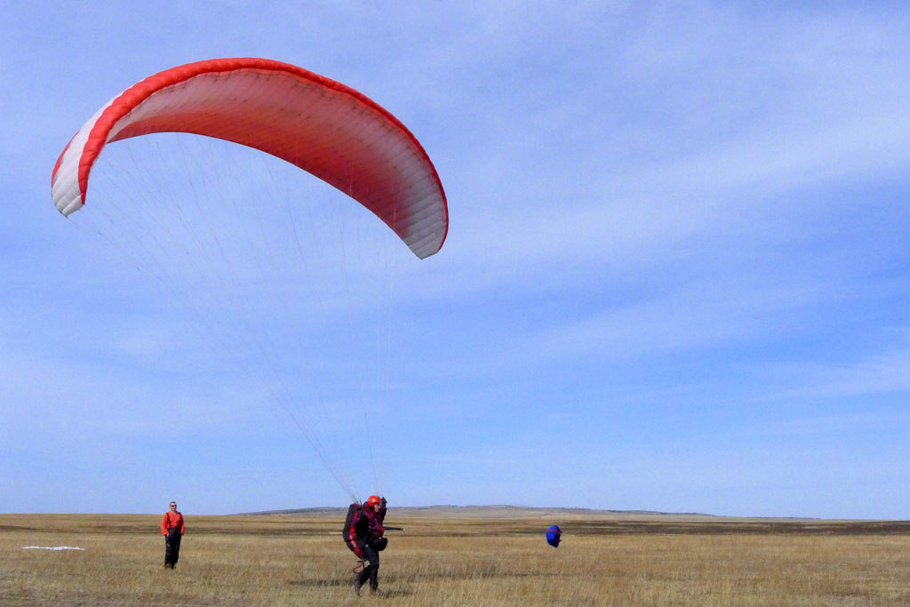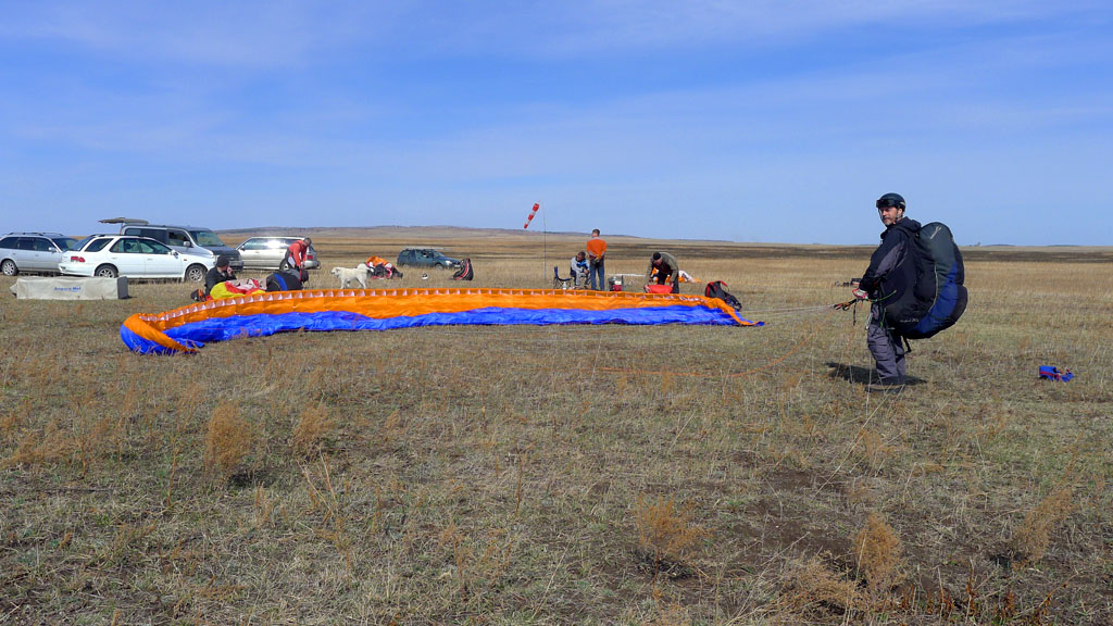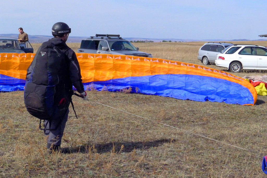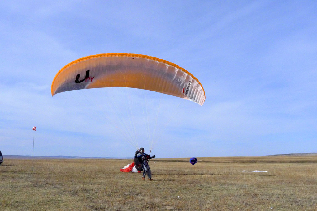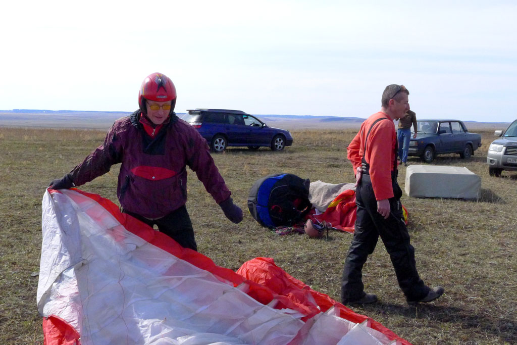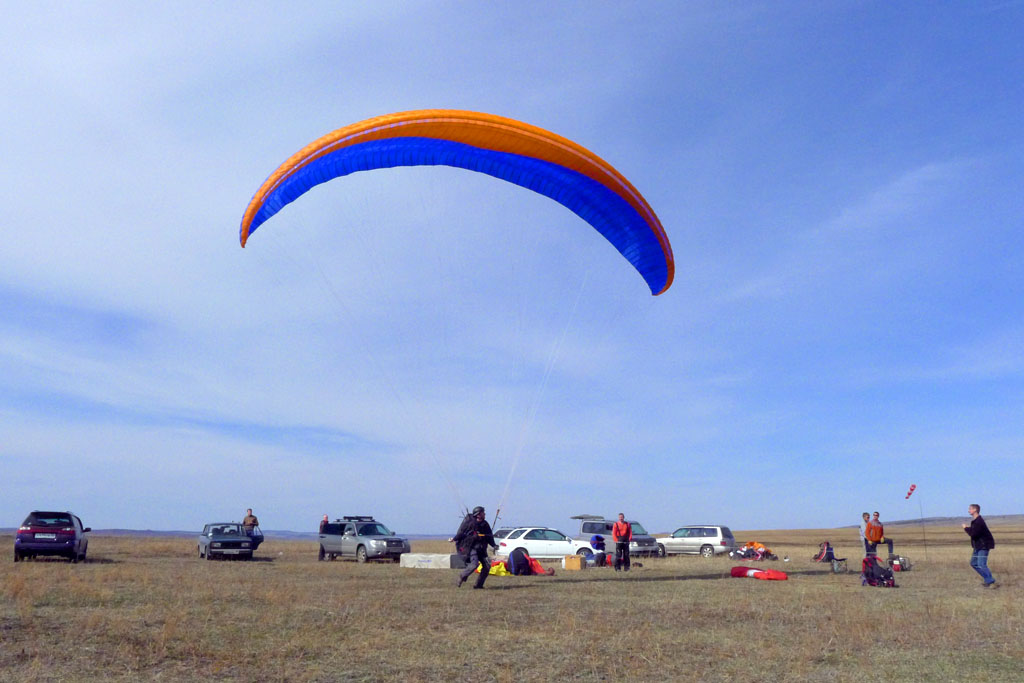 Направление ветра распорядилось так, что в начале логичней было лететь по Ю ветру, ты туда и полетел. Остальные пилоты полетели вбок в сторону Усть-Орды, т.е. в сторону Баяндая, ближе к трассе, понимая, что там подбор облегчен.
