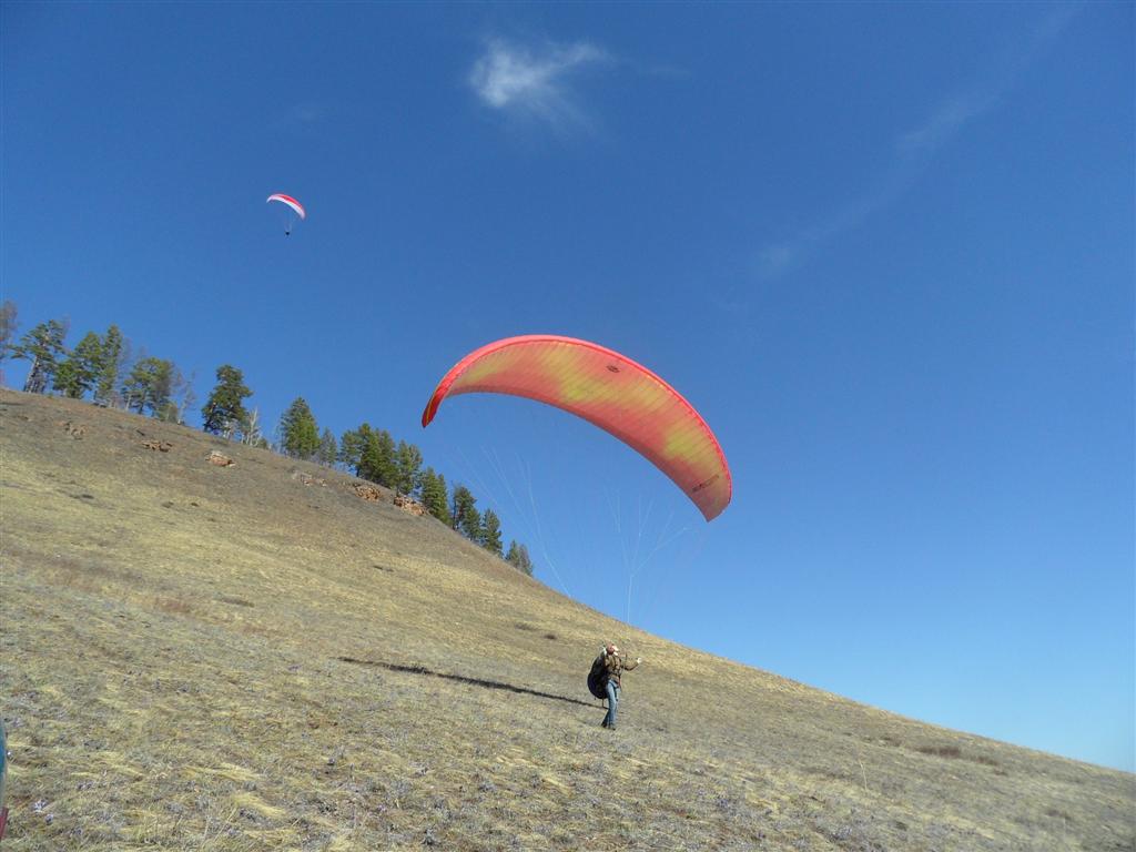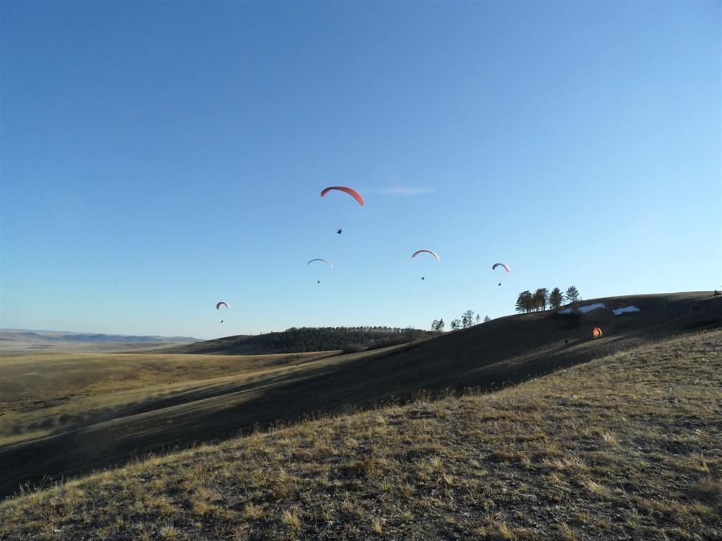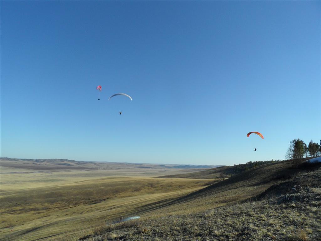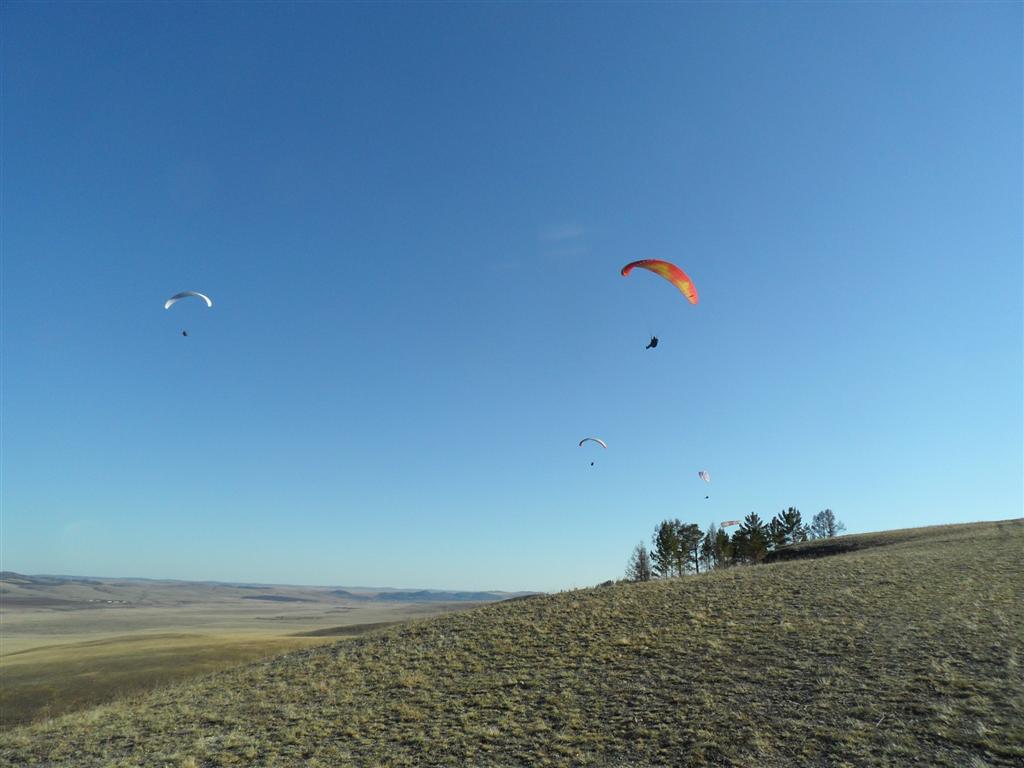 Возвращяясь назад, завернули на Бозой, где встретили шикарный ровный динамик и часть нашей парапланерной братии.