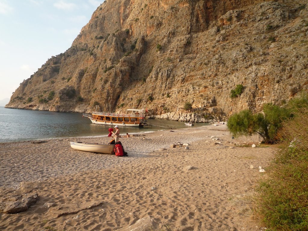 Вскоре над бухтой появился Андрей (Бобр) и показал высший пилотаж между этих отвесных стен. Его акробатика в ограниченном пространстве выглядела потрясающе. Закончив упражнения практически над водой и сделав красивый вираж вокруг мачты стоявшего в бухте корабля, Андрей приземлился на пляж под общие аплодисменты и восторженные вопли зрителей.