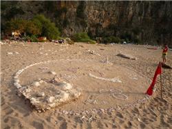 Сама "Бухта бабочек" особого впечатления на меня не произвела. В эту бухту можно попасть только по воде или с воздуха. Узкое и глубокое ущелье в горах, выходящее к морю. Маленький пляж, который выполнял роль посадочной площадки. В центре пляжа - ритуальный круг, выложенный из камней. Аборигены очень беспокоились, что кто-нибудь сядет на этот круг и порушит сооружение. Но все обошлось, только один пилот сел рядом и немного потоптался в круге, не разрушив пирамидки.