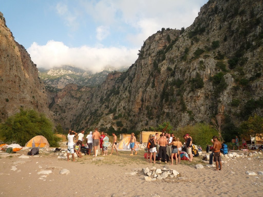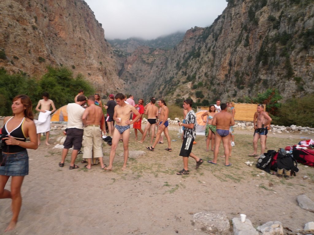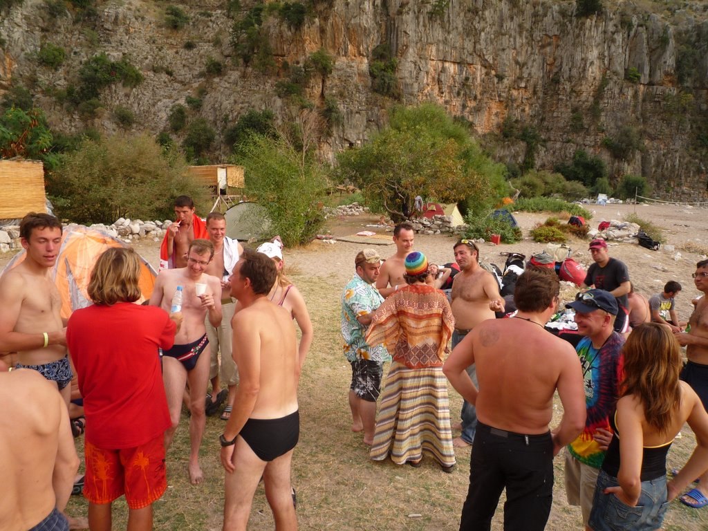 Потом был импровизированный банкет на берегу, разговоры, обсуждения. Делились впечатлениями. Сходили в глубь ущелья на водопад. Я водопада так и не увидел. Быстро стемнело и пришлось возвращаться на берег.