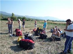 Часть пилотов приземлились в других местах. Или высоты не хватило или ветром сдуло. Отличился Денис-ниндзя. Ему не хватило высоты, чтобы перевалить горку перед долиной и не смотря на все героические усилия набрать хоть немного высоты, его замкнуло между большой горой и этой горкой. Пришлось садиться на поляну.