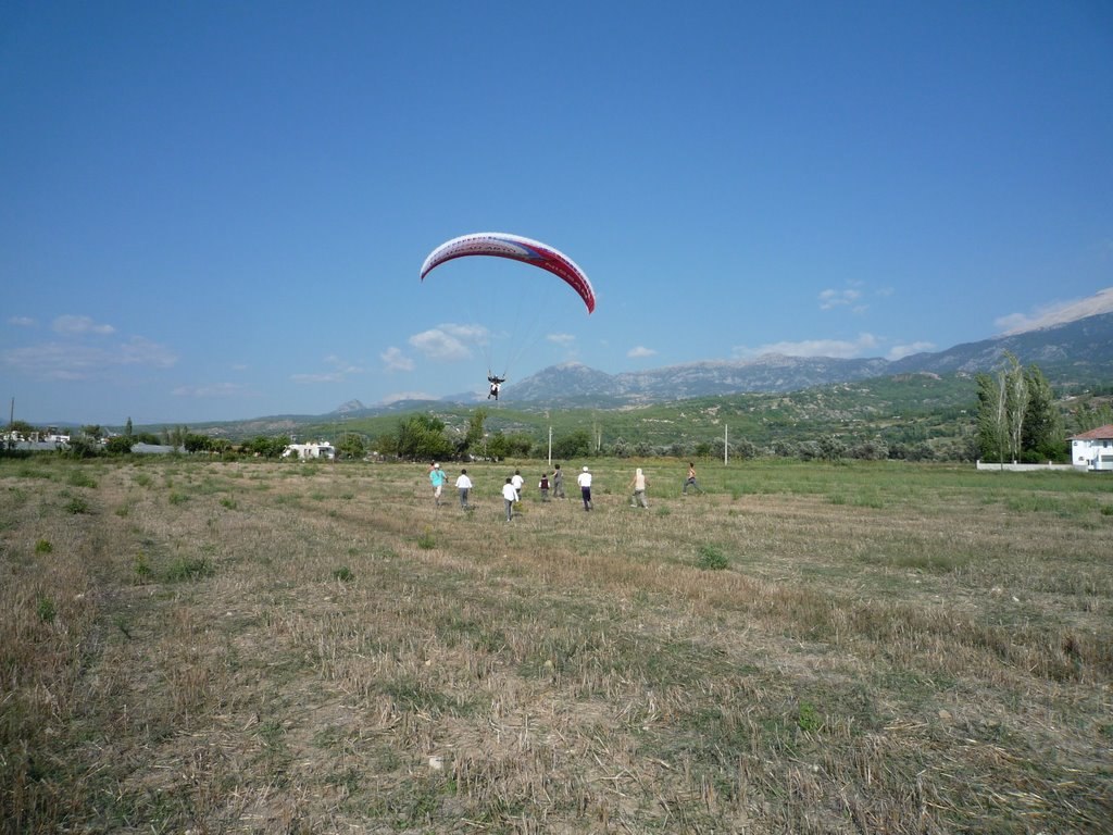 В конце концов я стал снижаться. Периодически подходили новые термики и опять поднимали параплан. Через полчаса я сел в назначенном для посадки месте.