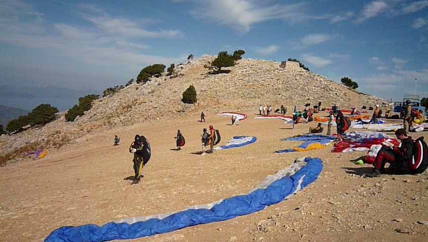 Чтобы успеть три раза подняться и спуститься приходилось делать всё очень быстро. Погрузились, забрались на гору, разложили парапланы, стартовали. После приземления быстро упаковать параплан и опять в машину. Впрочем, между первым и вторым рейсом успели пообедать.