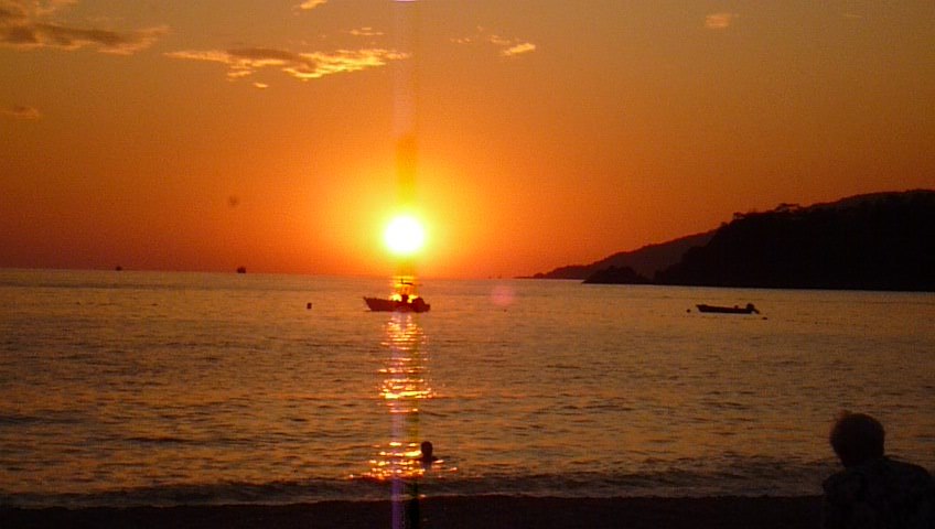 Директор в третьем полете организовал групповое пилотирование. Три параплана выстроились "свиньёй" и полетели в бухту. Я висел над ними и сзади в нескольких сотнях метрах. И никак не мог догнать, чтобы пристроиться к фигуре. Когда группа прилетела в нашу бухту, началась фотосессия. Начинался закат. Красное солнце. Группа движется к солнцу, потом обратно. А завершающая синхронная спираль выглядела просто великолепно. Снимки должны были получиться очень хорошими. Жаль, что в этот раз у меня с собой не было фотоаппарата.