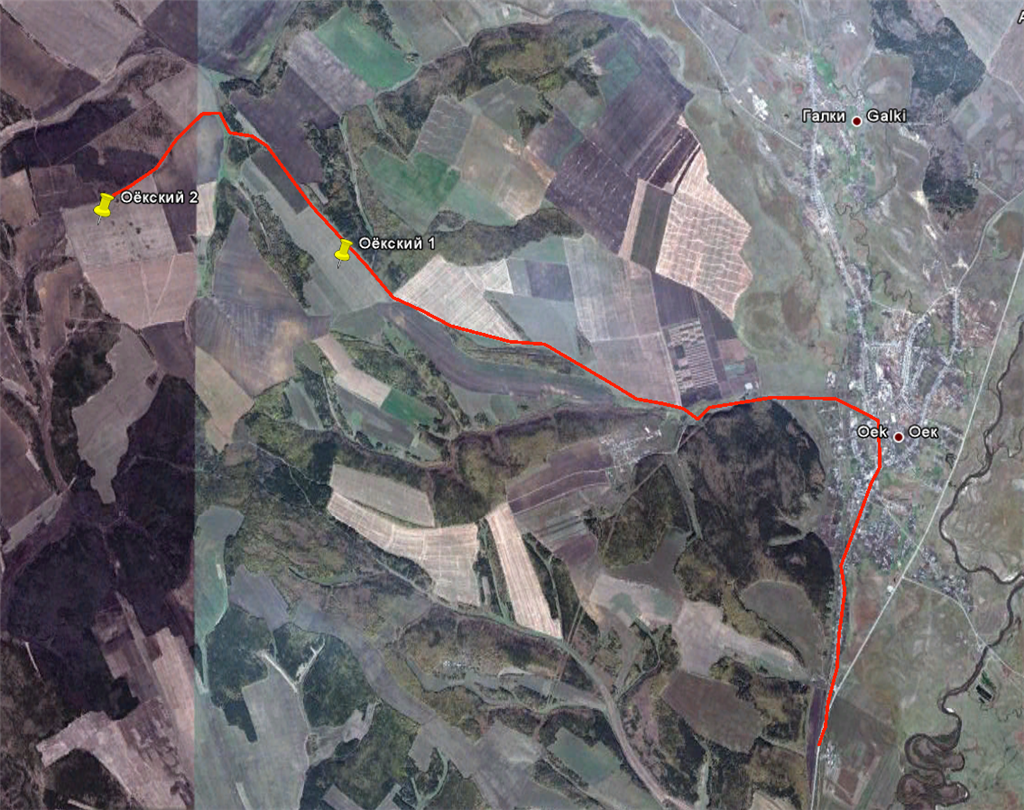 После съезда в поле ехать левой дорогой 4.5 км до точки старта Оёк-1.