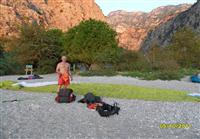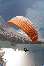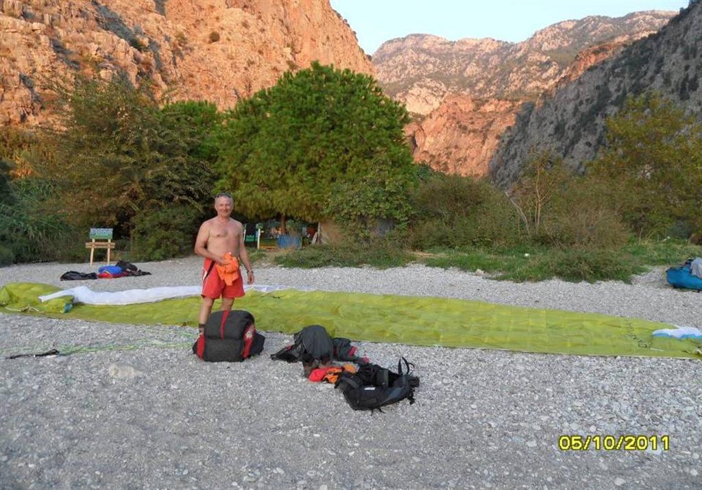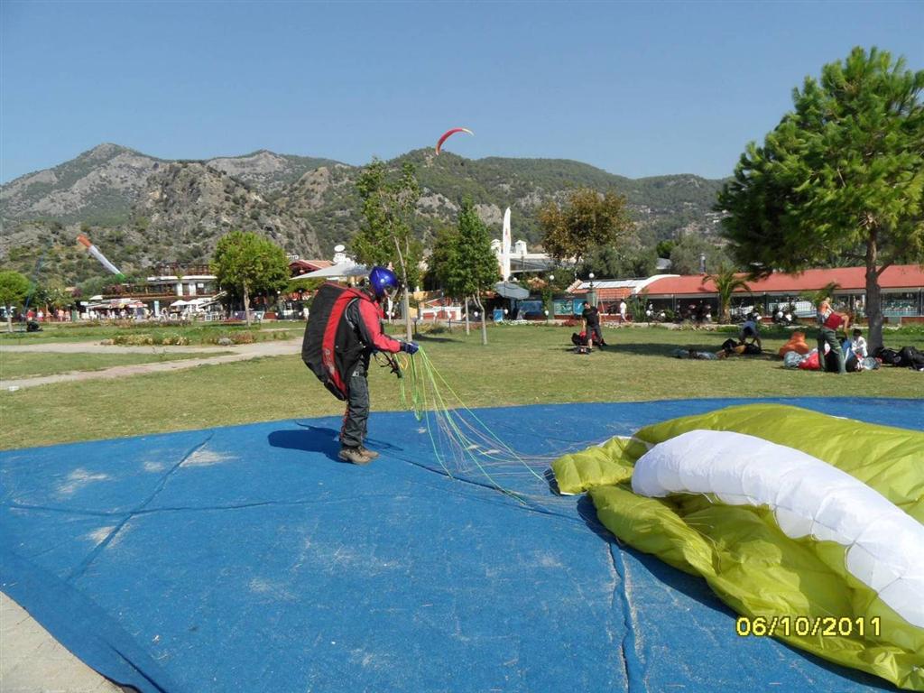 Полеты, конечно же, были шикарные. Запас высоты большой, воздух стабильный, виды кругом обалденные …. Не случайно эти места давно уже облюбованы парапланеристами всей Европы. Однако учитывая, что главной целью нашего нынешнего посещения Олудениза было обучение, большая часть полетов была посвящена именно этому. В самостоятельных полетах такого экстрима, как до этого, конечно же, не было, но отдельные упражнения (спирали, подвороты, боевые развороты делали все). Вот только с полным срывом потока (наиболее рискованное упражнение) Саша Номеровский не стал экспериментировать. Мы же с Сергеем выполняли и это упражнение. Единственное, в первый полет дня я его никогда не делал, а только во второй или в третий. Объяснение простое. Если что-то пойдет не так и придется приводняться, так чтобы хоть не весь день пропадет. Однако все обошлось без каких-то эксцессов. Все выходы из срыва получились довольно мягкие, без больших галстуков или твистов. Психологически конечно было сложновато заставить себя работать экстрим (полный срыв потока – настоящий экстрим), когда можно и не работать, но нам это удалось преодолеть.