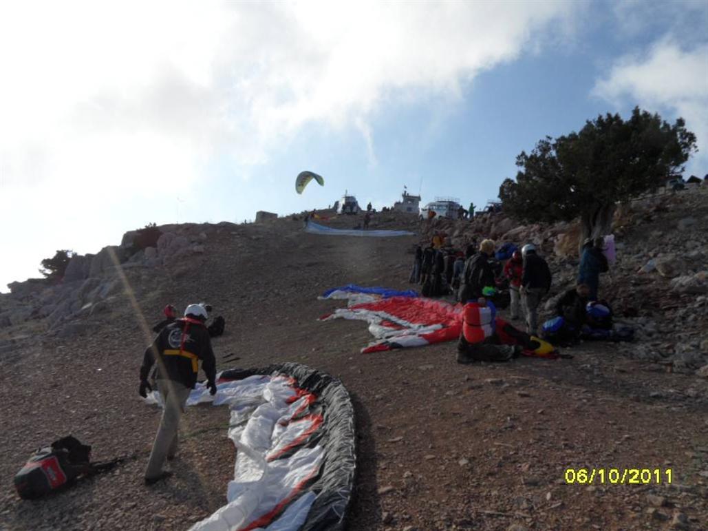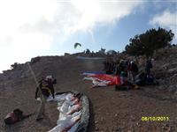 Поднялись без приключений с одной остановкой у лесников. Лесниками называли пост на подъезде к горе, которым платили за дорогу и возможность использования самого места для старта. Самый нижний старт бал тоже выложен брусчаткой (два года до этого, по словам Сергея, там было много камня, и стартовать было не очень удобно.), что радовало. Значит деньги, которые собирали за въезд на гору, использовали не только на себя, но и на улучшение условий бытия летающей братии. На нижнем старте, куда мы заехали, был выстроен небольшой домик с цивильными туалетами (М и Ж) и небольшой барной стойкой под навесом, в которой можно было взять за 2- 3 лиры чай или кофе. Так что все достаточно цивильно.