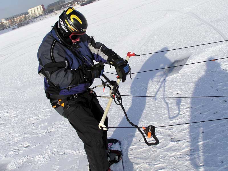 Важный нюанс – в целях безопасности, крепить "намертво" кайт к трапеции нельзя (например, карабином), с ролика (крюка) репшнур-узда (или петля планки) должны скидываться быстро.