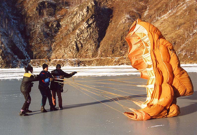 Конструкции воздушных змеев бывают разными, но эволюция зимних буксировочных змеев пришла в итоге к самому эффективному с точки зрения аэродинамики и эксплуатации: бескаркасному тканевому крылу-парафойлу. О нём и пойдёт речь.