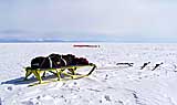 5-го апреля с утра немного стало поддувать с южного направления, я был готов к старту. Около часа дня, когда утряслись все дела, мы дружно вышли на заснеженный сор, таща весь мой немалый скарб. Для начала я просто покатался, позируя Николаю Николаевичу. Подцепил нарты, сделал ещё несколько проездов для фото и видеокамеры, махнул рукой провожавшим меня и двинулся к руслу Кичеры.
