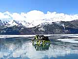 Всё кругом сказочным образом преобразилось – утром я выходил из зимовья ещё по снегу, а сейчас всё вокруг растаяло. В прозрачной воде отражалось бирюзовое небо, пушистые облачка и снежный хребет. Полнейшая тишина, яркое солнце, умытая и умиротворённая, словно после летней грозы, окружающая природа. Кажется, на сегодня всё – приехали.