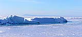 Вот, кажется что-то более-менее подходящее – большой рыхлый айсберг мостиком перекрывает разлом. Встёгиваюсь в лыжи и лезу на покачивающийся остров. Площадь опоры в лыжах значительно больше, чем в ботинках и я не боюсь продавить под собой ненадёжную опору. Потихоньку затягиваю за собой нарты и спрыгиваю с метровой ледовой ступеньки на противоположный край трещины. Пронесло удачно, но потерял около получаса ветра.
