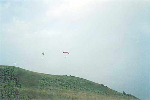 День пасмурный, прохладный, ветер средний, но с порывами до 10 м\с. Вроде почти идеально для динамика. У меня тогда еще своего крыла не было. Летал, а вернее сказать полетывал, на крыле моего друга, получившего звучное партийное прозвище Ваван Сидорыч. У него был Командор, на котором я и учился и летал в динамике. Правда зарекся летать без акселератора. Погодные условия на нашей горе иногда меняются в течение пары минут, да и после того как меня за горку сдуло, без резерва, что дает акселератор, летать мне лично неприятно.