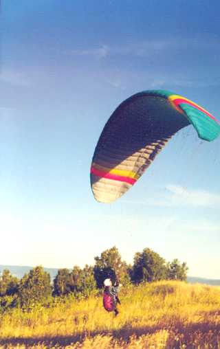 Евгений летал на Навигаторе, причем на нем и учился летать, в динамик полез абсолютно самостоятельно. Никто ему ничего не показывал. Мы тогда еще не разбирались особо, что парапланы делятся на какие то классы. Правда слышали, что есть те, что для новичков, ну и те, что для спортсменов, но вот понять, чем уж они радикально отличаются, никто из нас не мог. Парапланерную тусовку в Красноярске мы не знали, так что особо спросить было тоже не у кого.