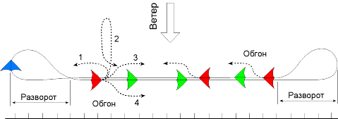 - обогнать справа («стандартный» обгон для левого галса в полном соответствии с правилами и при выполнении условий безопасности из предыдущего пункта; при обгоне справа на правом галсе необходимо убедиться в достаточном запасе высоты, так как при этом маневре практически неизбежен выход аппарата над вершиной горы в зону усиления (поджатия) ветра и отсутствия динамика (нет вертикальной составляющей ветра)).
