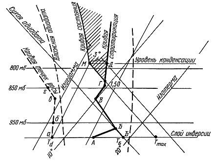 В метеорологических подразделениях по данным радиозондирования составляют специальные графики — аэрологические диаграммы. С их помощью анализируют состояние атмосферы на различных высотах. Особенно они нужны для прогноза развития конвекции и конвективной облачности. Такой график представляет поэтому большой интерес для оценки метеорологических условий полетов.